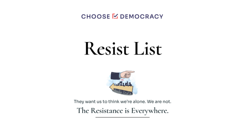 - A big resist list for getting a handle on what's going on with the current administration and ideas for action.
